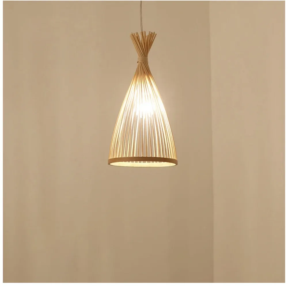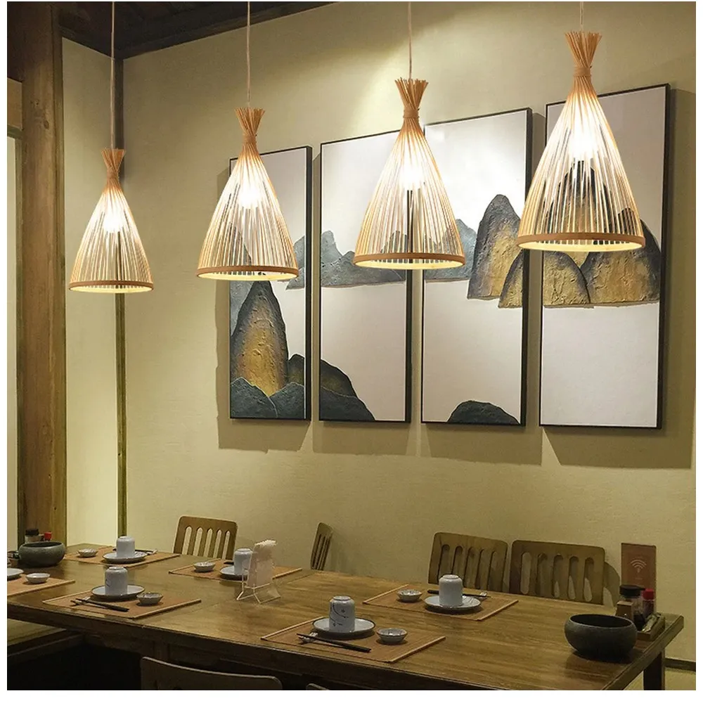 Lâmpada pingente de bambu artesanal vintage, Restaurante Café Lustres, Base de madeira, Iluminação bulbo E27, Hotel e quarto, Lâmpada clássica interior